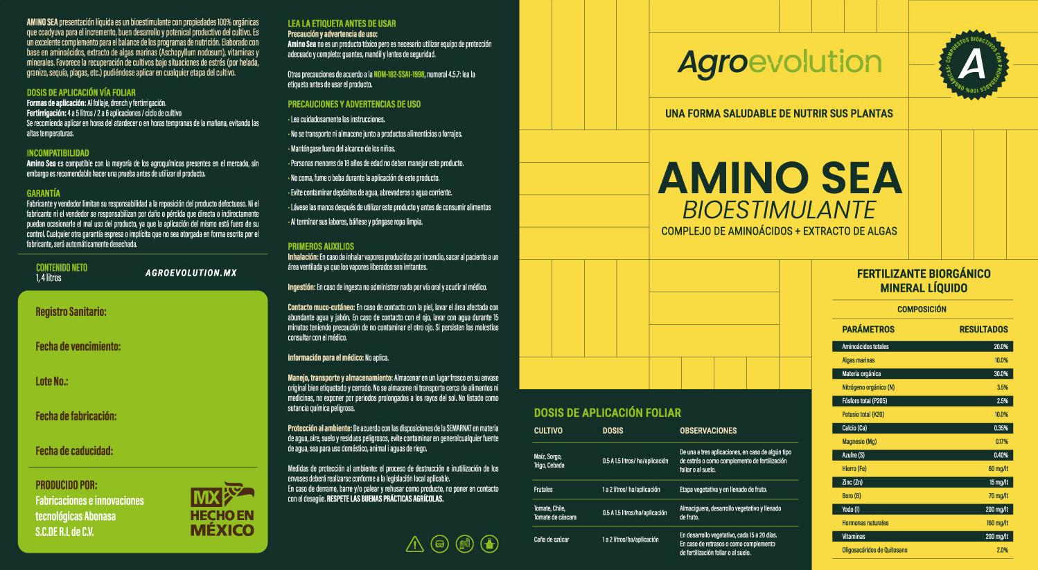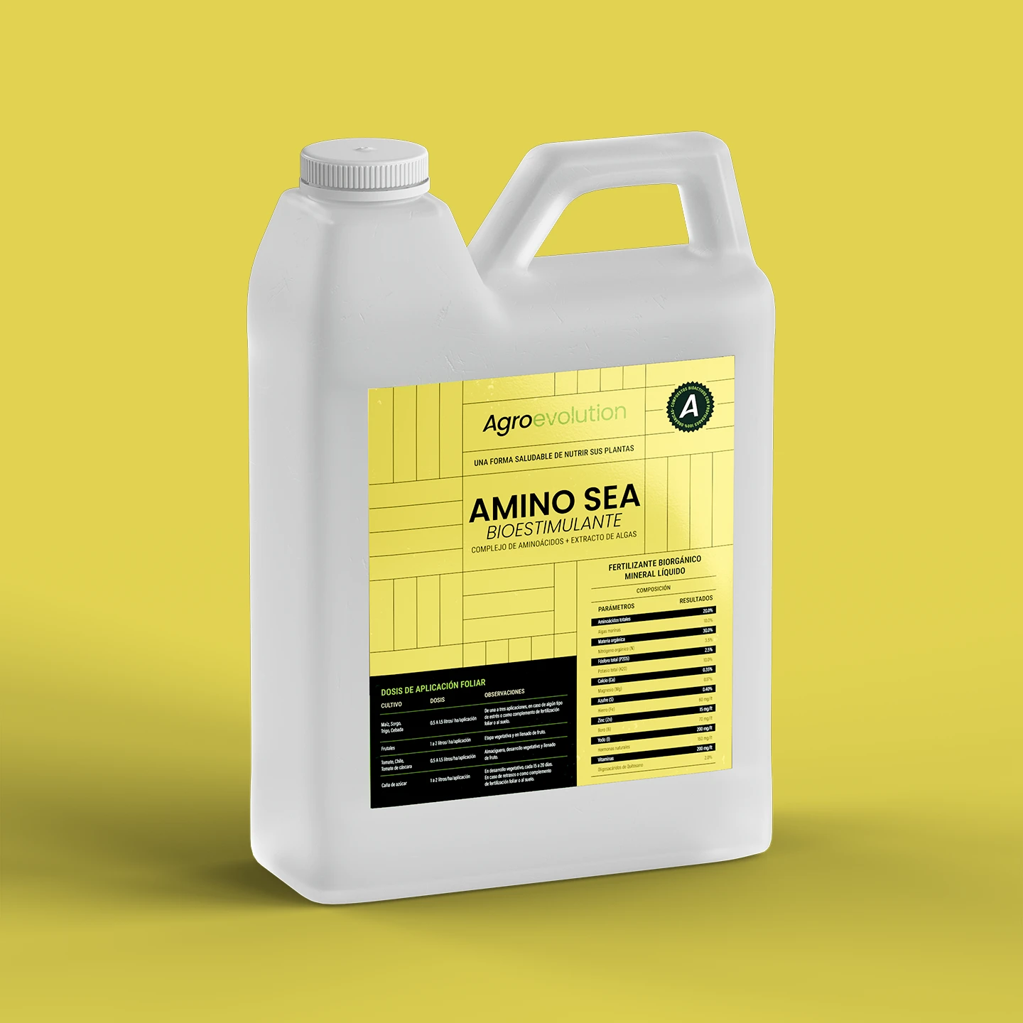 Amino sea es un bioestimulante con propiedades 100% orgánicas que está diseñado en base a una serie de aminoácidos, extracto de algas marinas, vitaminas y minerales.